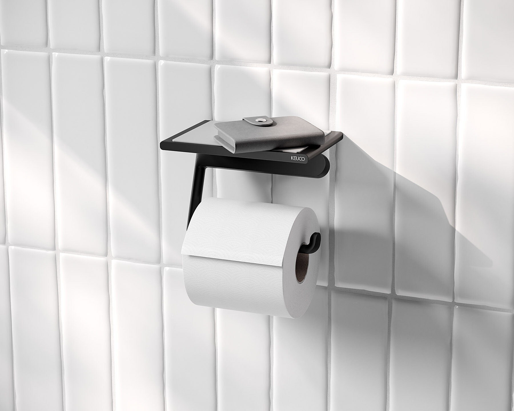Apropos clever: Das Keuco Zubehör wartet mit smarten Details und praktischen Features auf. So verfügt der Papierrollenhalter über eine Ablage für Handy und Portemonnaie, die Duschablage besitzt sogar, völlig unsichtbar, einen integrierten Glasabzieher. Die stilsicheren Helfer stellen sich ohne Kompromisse auf alle Nutzer*innen ein und perfektionieren den Komfort im Badezimmer.